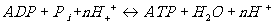 Реакция, протекающая слева направо, сопряжена с транспортом H+ по градиенту ΔμH+, при этом выделяется энергия